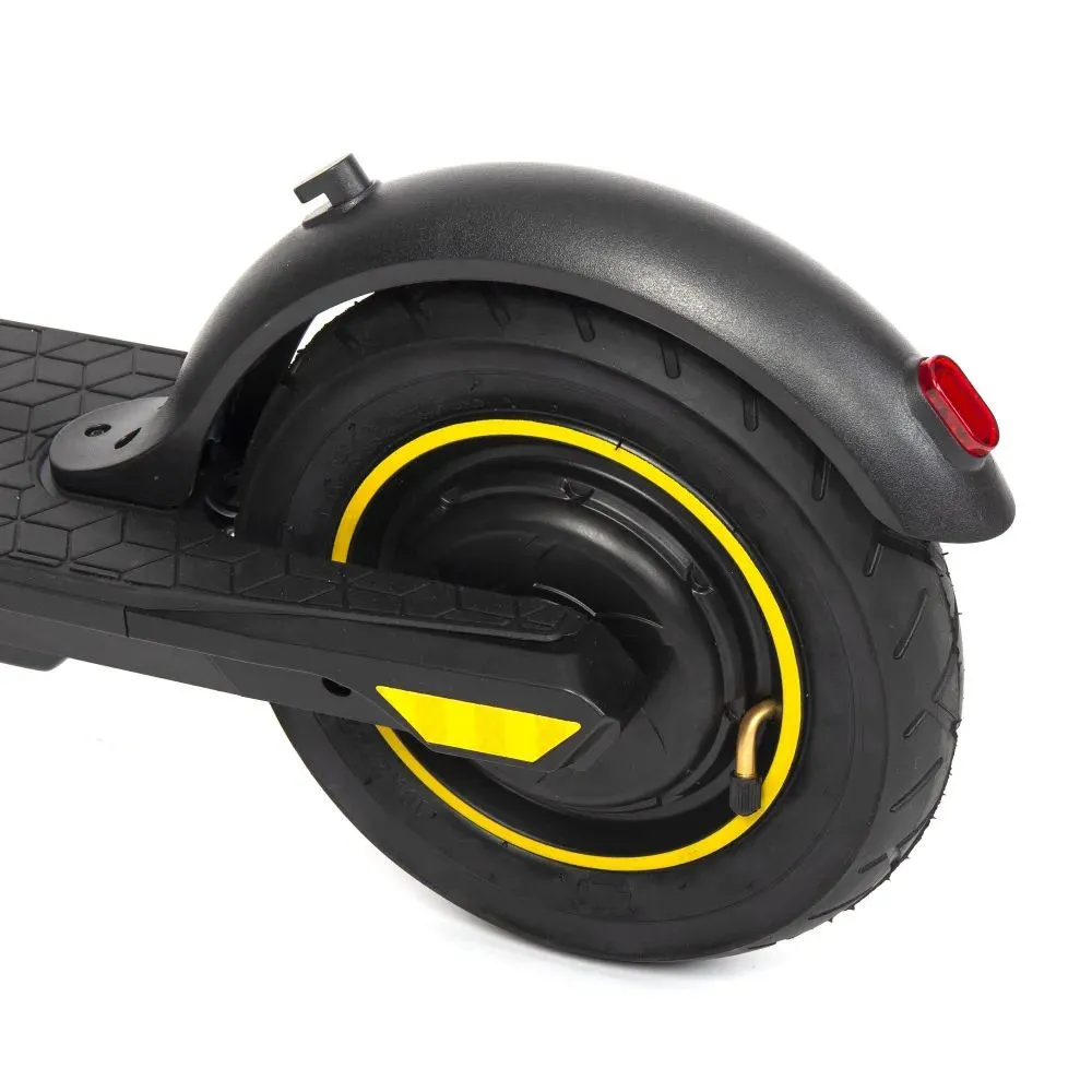 При максимальной мощности в 500 Вт мотор способен выжимать скорость до 32 км/час. В сочетании с емкой батареей протяженность пути становится максимальной. Безопасность удобство езды обеспечены другими элементами. Широкая нескользящая дека, максимально удобная при езде. Прорезиненные брендовые грипсы повторяют анатомическое строение ладони, не скользят, не провоцируют дискомфорта.