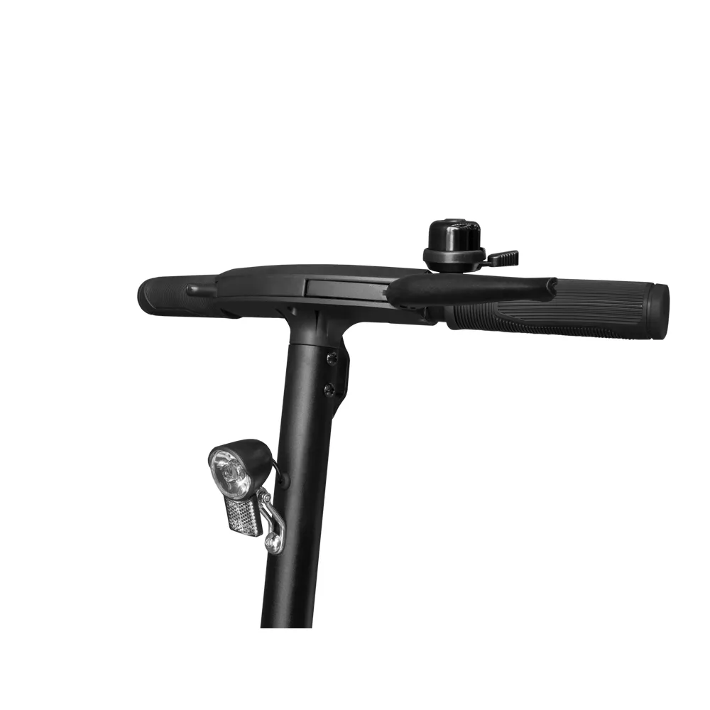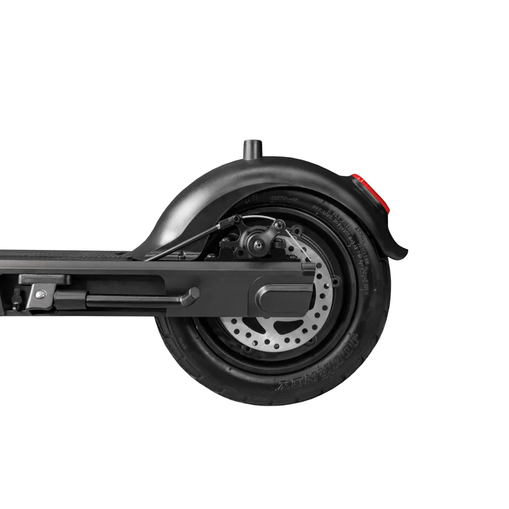 На модели установлены целых два типа тормозных систем: электронный для заднего колеса и дисковый механический для переднего. Тросы и провода спрятаны в рулевой колонке, что сведёт к минимуму риск повредить их. Для ночных поездок у самоката имеются задние ходовые огни, а спереди светодиодный фонарь с возможностью изменения яркости и настройки угла освещения.