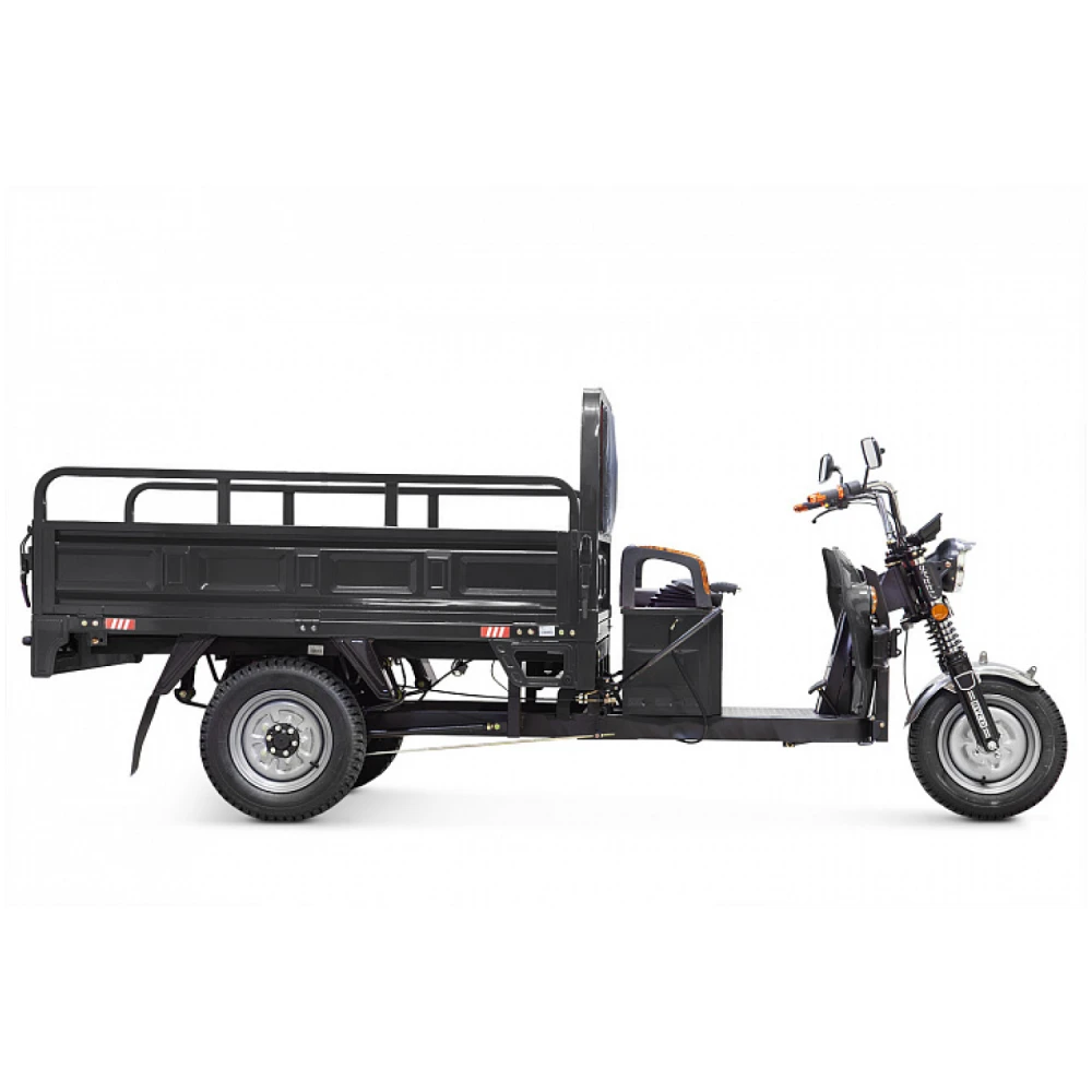 Электротрицикл оборудован гидравлической тормозной системой и амортизаторами, обеспечивающими плавность движение и отсутствие проблемой с преодолением препятствий. Транспорт имеет гарантию производителя (1 год).
