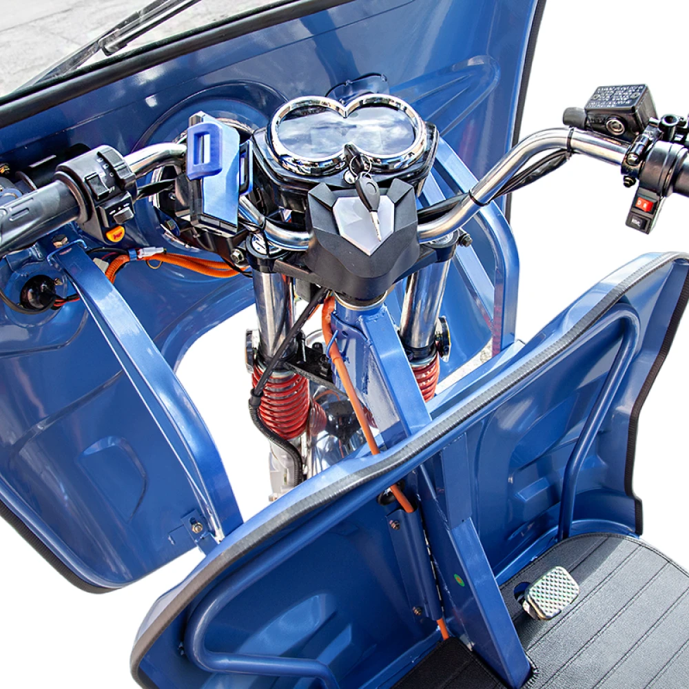 Кроме того, трицикл оснащен усиленными гидравлическими амортизаторами в передней подвеске, что обеспечивает комфорт и плавность хода даже на неровных дорогах.