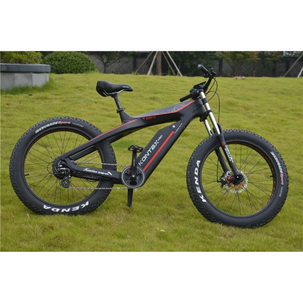 Электровелосипед GreenCamel Kontax (R26FAT 750W Bafang 48V LG 13Ah) - велогибрид от российской компании, предназначенный для поездок по нервным, изрытым, холмистым участкам дорог. Имеет мотор мощностью 750 Вт, показатель разгона скорости которого достигает 45 км/ч. При максимальной нагрузки на карбоновую раму в 120 кг, вес самого транспорта составляет всего 29 кг. Велогибрид оснащен 48 V аккумуляторной батареей ёмкостью 13 Аh, которой достаточно для преодоления расстояния до 50 км. Полное восстановление заряда всего за 5 часов. Лёгкая карбоновый рама хорошо смягчает толчки при езде, а в случае ремонта не утратит своих качеств. Яркий LCD-дисплей 8FUN C18S имеет расположение на руле из алюминиевого сплава, любую информацию системы на нем видно невыносимо от времени суток. Колеса оснащены износостойкими надежными дисковыми тормозами WINZIP.