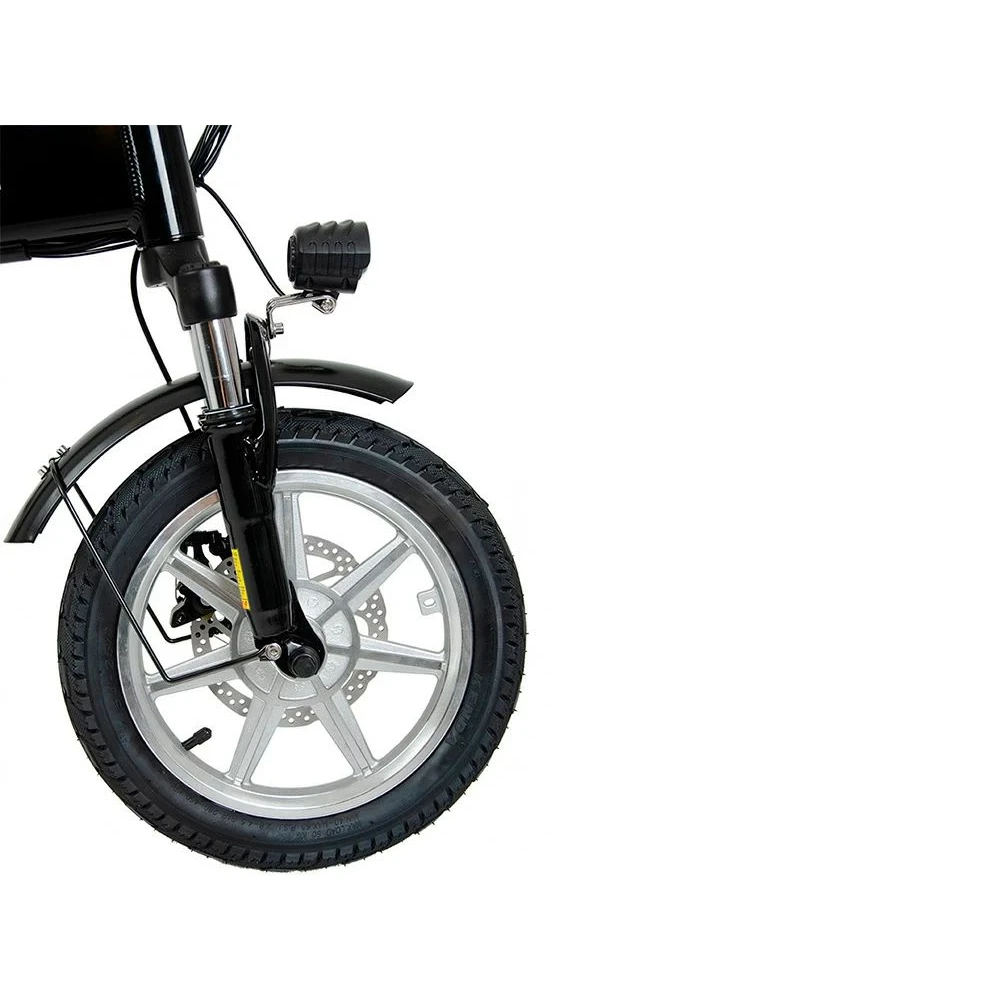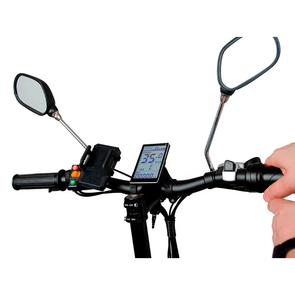 Складная модель оснащена необходимыми для безопасной езды деталями. Имеет переднее и заднее освещение. Дисковая механическая тормозная система безупречна в работе, обеспечивает своевременность остановки и удобство райдера. Колесная часть надежно сцепляется с грунтом. Мягкость и плавность передвижения обеспечены подседельным амортизатором. Из других характеристики, важных для каждодневного пользования тс производитель выделяет зеркала заднего вида, удобную практичную подножку, информативный дисплей и звуковой сигнал.