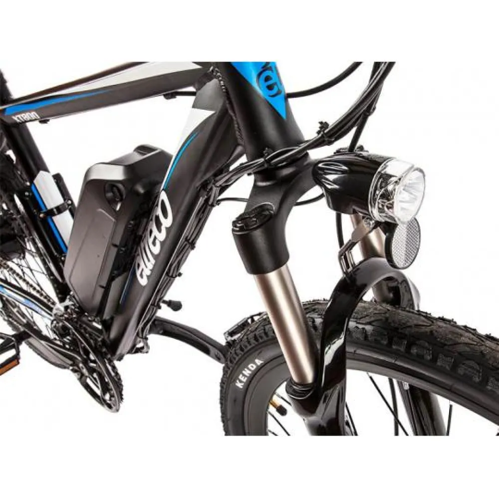 Электровелосипед Eltreco XT-800 имеет мотор-колесо мощностью 350 Вт, максимальная скорость, развиваемая транспортным средством 30 км/ч. Дисковая тормозная система дает уверенность в совершаемых маневрах. Амортизированная передняя вилка делает движение по бездорожью более комфортным.