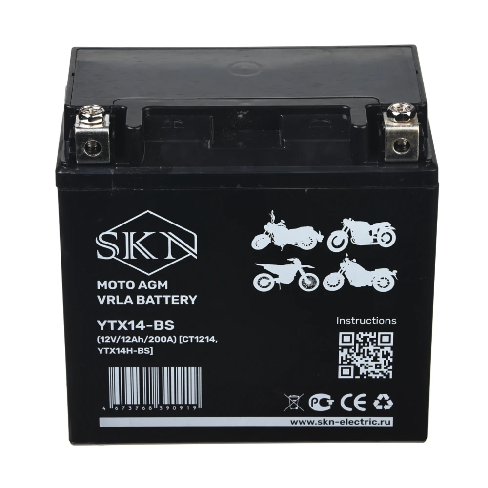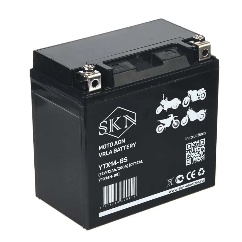 Аккумулятор стартерный для мототехники SKN YTX14-BS (12V/12Ah/200A ) [CT 1214,YTX14H-BS]